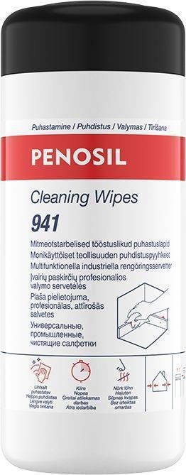 Penosil puhastuslapid Cleaning Wipes 941 on suured tööstuslikud puhastuslapid värvi, liimi, õli, ehitusvahu, hermeetiku ja muude plekkide eemaldamiseks kätelt, tööriistadelt ja muudelt pindadelt. Pakis on 50 lappi.