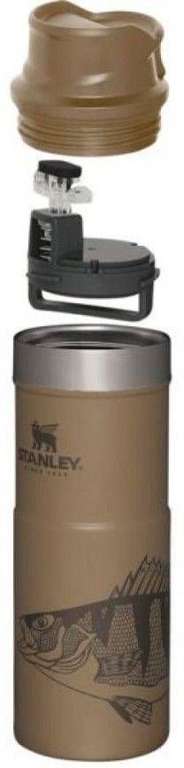 Stanley termostops 18/8 roostevabast terasest, BPA-vaba. Topeltseinaga vaakumisolatsioon. Lihtne kasutada ühe käega, joomisala avaneb nupule vajutusega ning sulgub kui nupp uuesti vabastada. Termostops on lekkekindel. Lihtsalt puhastatav nõudepesumasinakindel kaas. Hoiab kuuma joogi soojana 7 h ja külma joogi külmana 10 h. Tootel on eluaegne garantii. Maht on 470 ml.