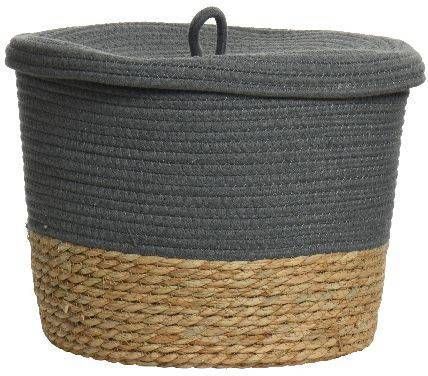 Puuvillane hoiukorv mõõtmetega 36 x 36 x 28 cm. Värvus on tumehall.