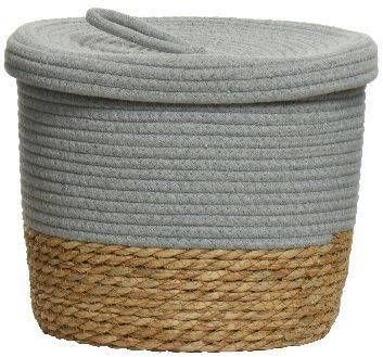 Puuvillane hoiukorv mõõtmetega 30 x 30 x 24 cm. Värvus on helehall.