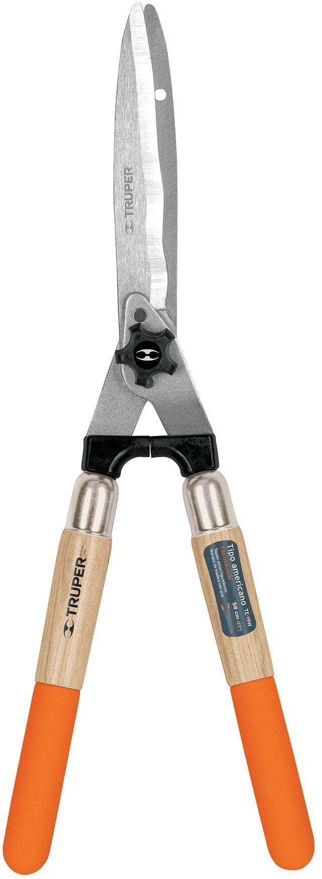 Truper hekikäärid lainelise tera ja puidust käepidemega. Kääride mõõt on 58 cm. Terad on valmistatud süsinikterasest ning neid saab reguleerida nupust. Laineline serv võimaldab lõikamise ajal oksi paremini hoida.