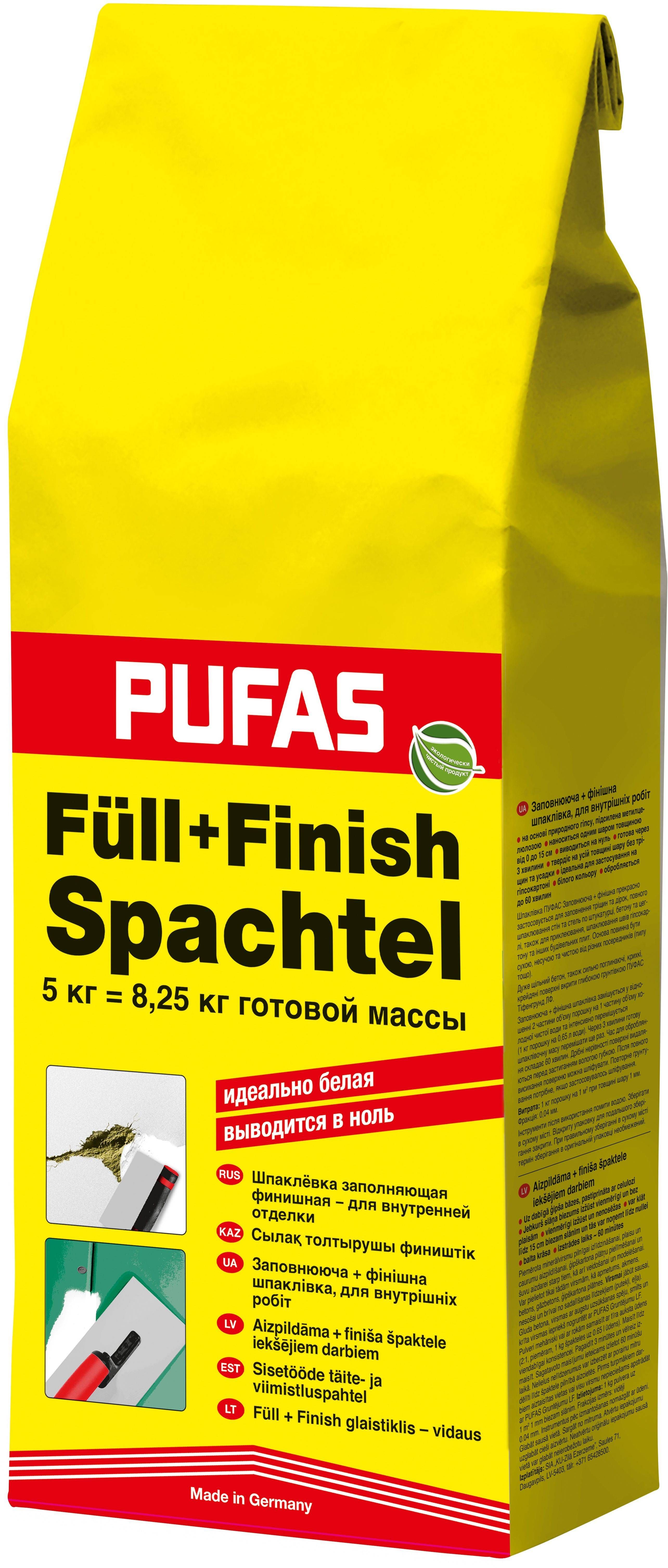 Sisetööde täite- ja viimistluspahtel Pufas Füll + Finish Spahtel sobib suurepäraselt pragude ja aukude täitmiseks , krohvist, betoonist ja müüritisest lagede ja seinte lauspahteldamiseks ning kipskartong– ja kergplaatide liimimiseks ja vuukimiseks.