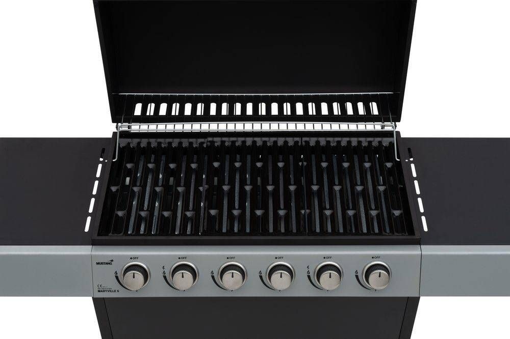 Mustang gaasigrill Maryville 6 roostevaba põletiga. Põletite võimsus on 6 × 2,8 kW. Koguvõimsus on 16,8 kW. Grillimisala mõõtmed on 72 × 36 cm, mis on jagatud kolmeks emailitud terasest 24 × 36 cm grillirestiks. Soojendusrest on 68 × 13,5 cm. Põletite peal soojajaotusplekid 6 tk. Grilli kaas, juhtpaneel, esipaneel ja korpus on pulbervärvitud terasest. Tulekambri all asub tsingitud terasest rasvaplekk. Piezo süütesüsteem integreeritud keskmisse regulaatorisse. Grilli teisaldamist lihtsustavad 2 suurt ratast. Tootel on garantii 2 aastat.