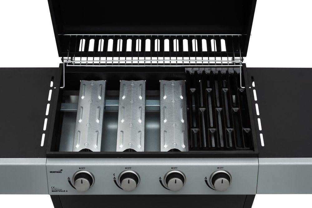 Mustang Maryville 4 gaasigrill 4 roostevaba põletiga. Põletite võimsus on 4 × 2,8 kW. Koguvõimsus 11,2 kW. Grillimisala mõõtmed on 63 × 36 cm, mis on jagatud kolmeks emailitud terasest 21 × 36 cm grillirestiks. Soojendusrest 57,5 × 13,5 cm. Põletite peal soojajaotusplekid, 4 tk. Grilli kaas, juhtpaneel, esipaneel ja korpus on pulbervärvitud terasest. Tulekambri all asub tsingitud terasest rasvaplekk. Piezo süütesüsteem integreeritud keskmisse regulaatorisse. Grilli teisaldamist lihtsustavad 2 suurt ratast. Tootel on garantii 2 aastat.