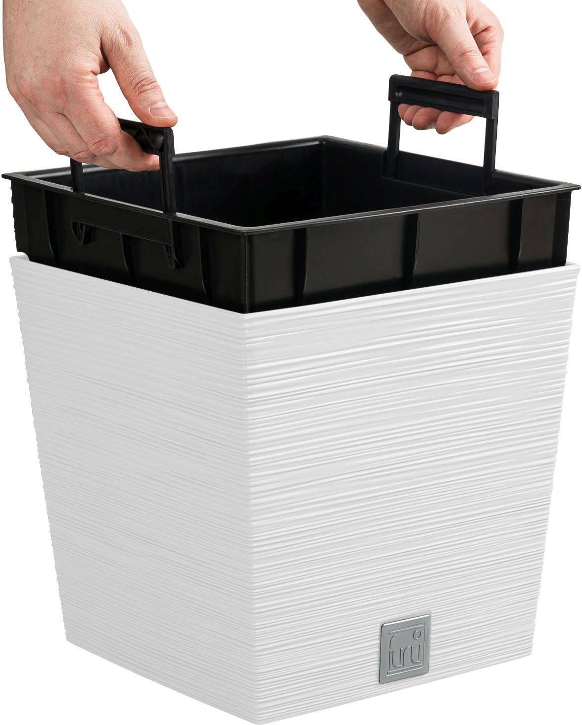 Prosperplast lillepott Furu on ruudukujuline. Mõõtmed on 29,5 x 29,5 x 55 cm. Lillepott on UV kaitsega ja külmakindel. Värvus on valge.