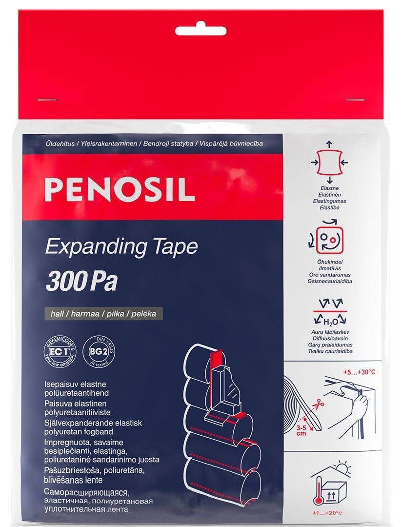 Penosil Expanding Tape 300Pa on eeltihendatud, isepaisuv ja elastne tihend välimiste fassaadi- ja aknavuukide kaitsmiseks tuule, vihma ja tolmu eest. Pärast paigaldamist materjal paisub ja täidab vuugi. Tulemuseks püsivalt elastne ja ilmastikukindel vuuk. Isepaisuv, täidab ebatasased pinnad. UV-kindel, kaitseb tuule, tolmu ja vihma eest. Tagab soojus- ja heliisolatsiooni. Aitab minimeerida hallituse ja mädaniku tekkimise ohtu ehituskonstruktsioonides. Avatud pooridega struktuur laseb vuukidel hingata ja niiskusel väljuda. Säilitab elastsuse. Keskkonna ja kasutaja jaoks ohutu. Talub äärmuslikku temperatuuri.