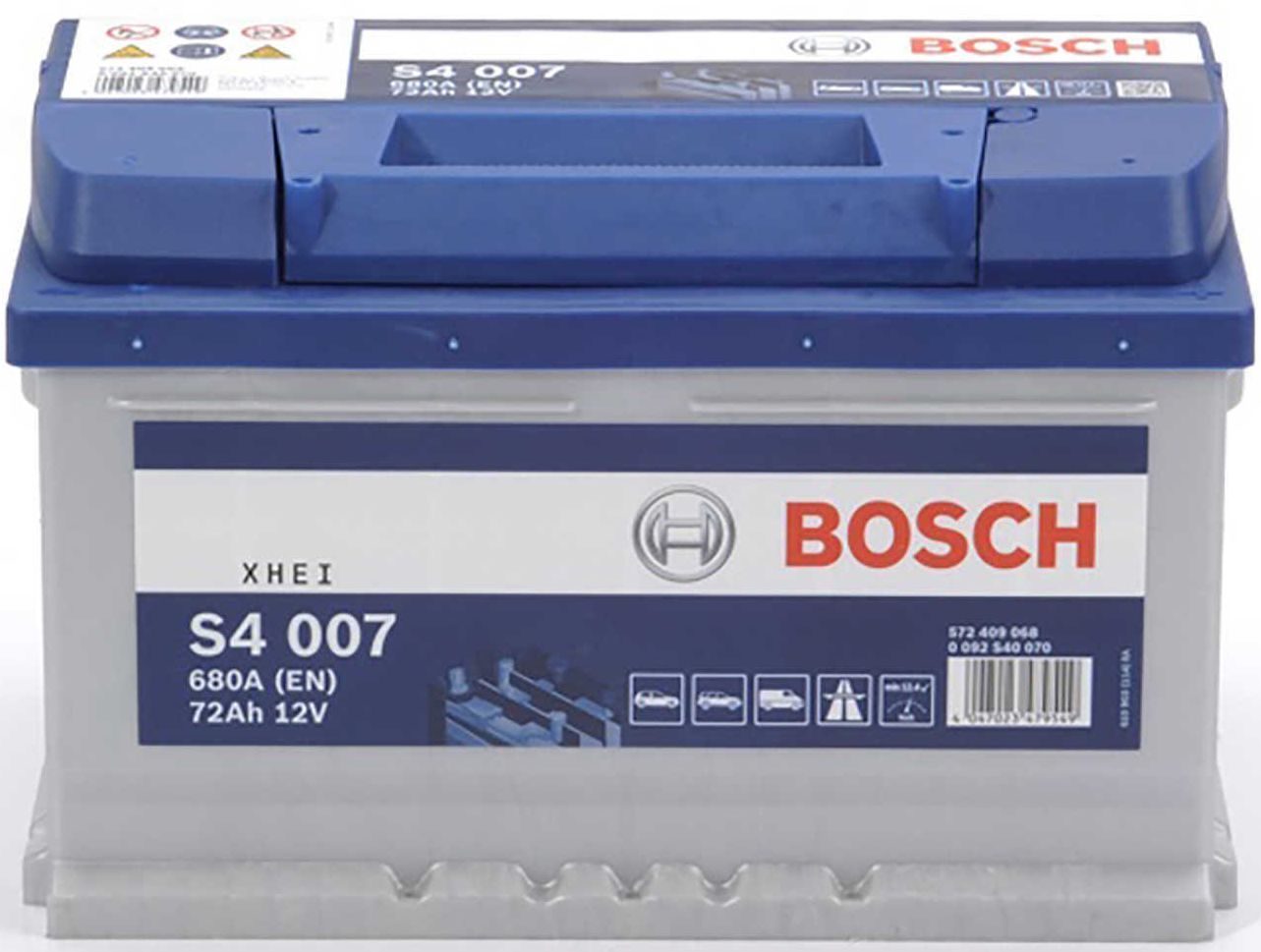 Bosch autoaku S4 007 maht on 72 Ah, stardivoolu võimsus 680 A. Mõõtmed on 27,8 x 17,5 x 17,5 cm.
