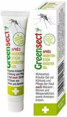 Greensect putukahammustusi leevendav geel. Tõhus taimse koostisega geel sügeluse ja paistetuse leevendamiseks pärast sääskede, parmude, mesilaste, herilaste nõelamisi ja kasutamiseks pärast sipelgahammustusi ja meduusidega kokkupuudet. Kogus 20 ml.
