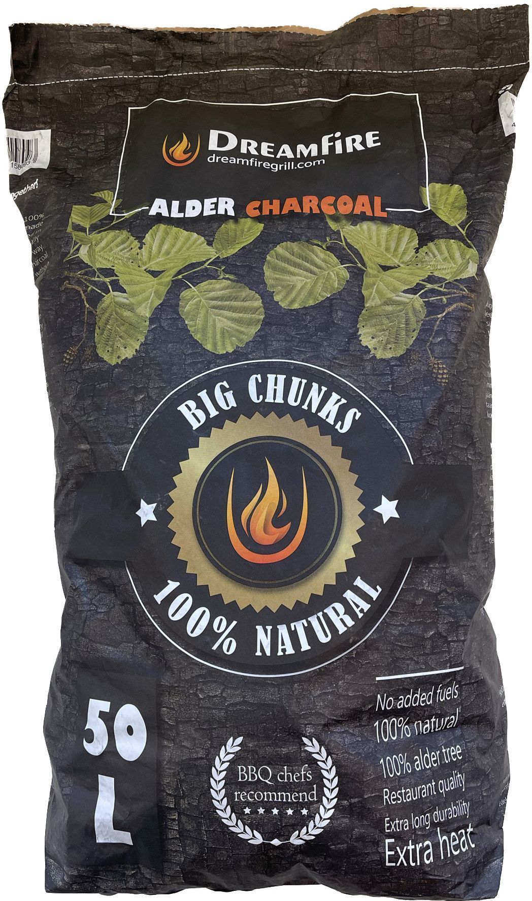 Dreamfire kõrgekvaliteediline lepapuidust grillsüsi eriti suure fraktsiooniga. Ideaalne süsi kodus grillimiseks, restoranides kasutamiseks. Suur ja ühtlane fraktsioon tagab ühtlase kuumuse ja madala söekulu. Sobib ideaalselt pikkade grillimiste ning suitsutamiste jaoks. Selle grillsöe kvaliteedinäitajad on kõrgeimad Eestis pakutavate grillsüte hulgas. Süttib kiiresti. Pakendi kogus 50 l.
