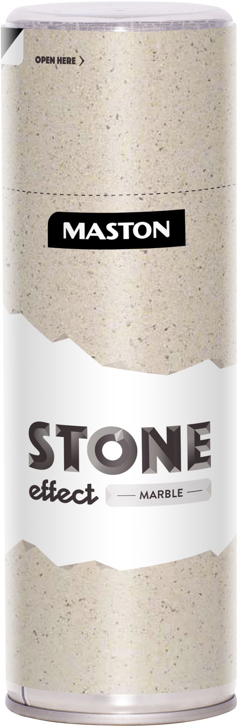 Maston Marble Stone Effect marmorkivi-efektvärv on matt veebaasil aerosoolvärv, millega saab luua imelisi looduskivilaadseid pindu. See muudab tavalised pinnad kauniteks kiviefektiga pindadeks. Pind muutub karedaks ja liivaseks. Krundina on soovitatav kasutada akrüülkruntvärvi. Ainult siseruumides kasutamiseks, pinna piiratud kulumiskindlus. Parema vastupidavuse huvides võib pinda töödelda Maston akrüüllakiga, kui pind on täielikult kuivanud (ca 24 tundi peale värvimist). Ülevärvimine teiste värvidega ei ole soovitatav. Kogus 400 ml.