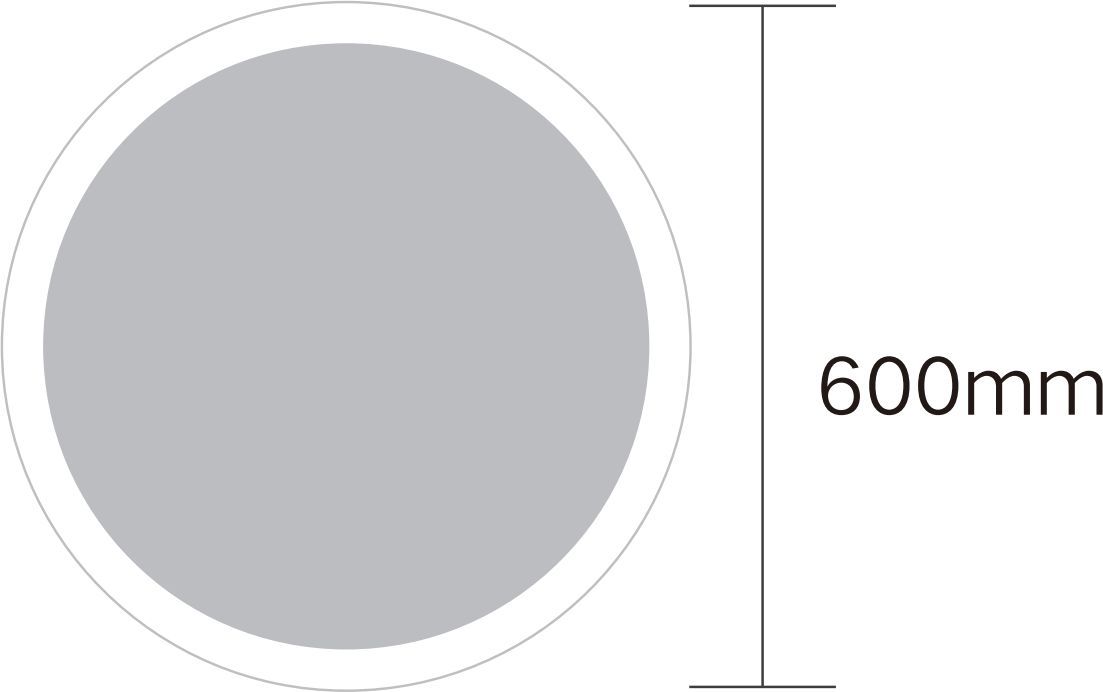 Aqualine ümmargune peegel alumiinium raamil, koos integreeritud LED-valgustusega, võimsus 12 Wt, luminestsentsi temperatuur 6000 K, IP54. Peeglil on sensorlüliti ja anti-kodens (udu eemaldus) sensorlüliti, toitekaabel on pistikuga. Peegli läbimõõt on 60 cm.