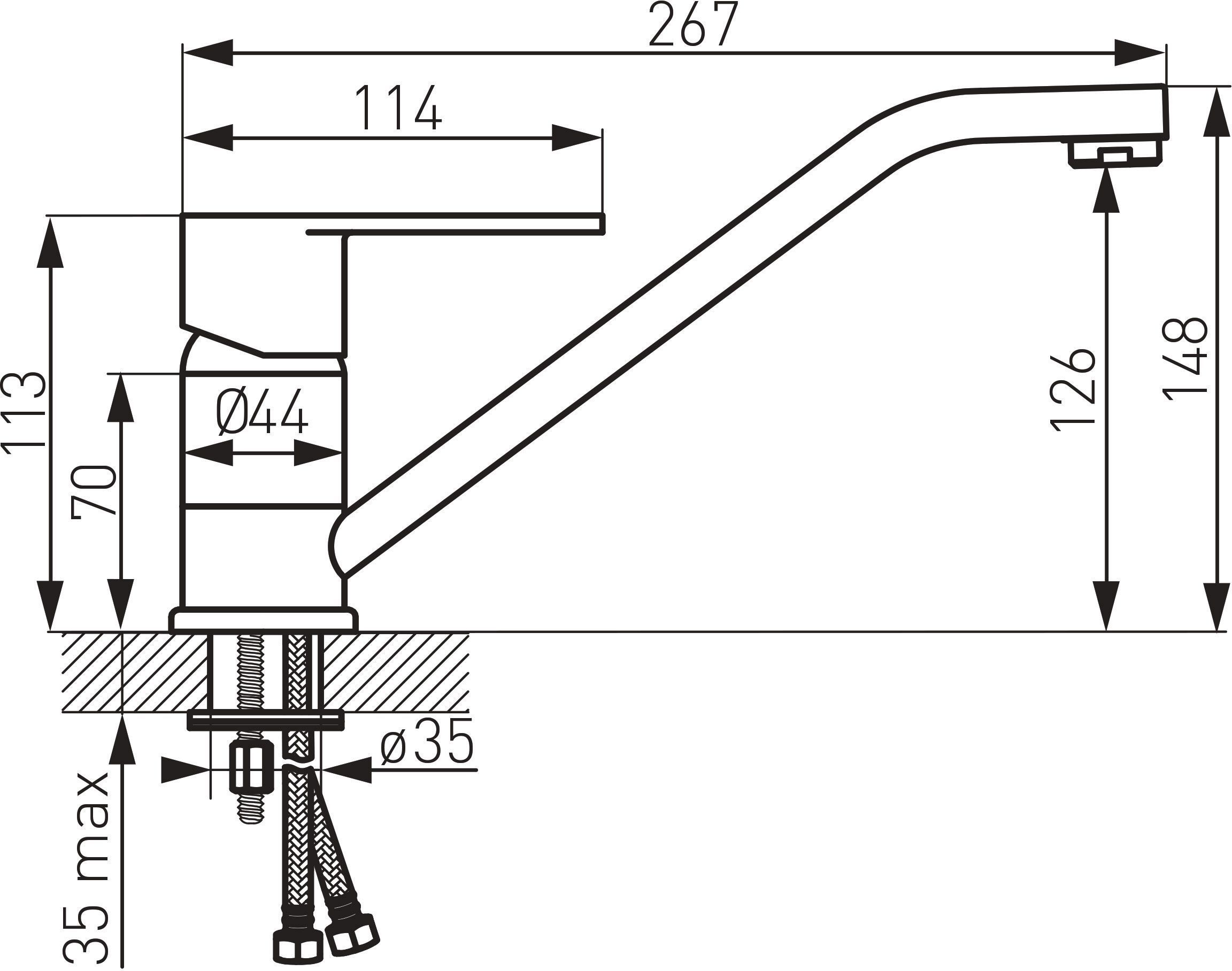 Ferro valamusegisti pöörleva tilaga. Segistil on vooluregulaator M24x1. Komplekti kuuluvad survevoolikud G3/8 - M10x1. Valamusegisti värvus on kroom.