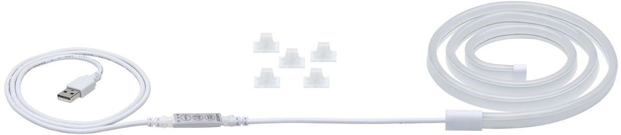 Paulmann 1-meetrine ühtlase neoonvalgusefektiga LED-riba on tõeline pilgupüüdja. See on painduv, voolitav ja vastupidav ning hoiab alati kuju, olgu see siis seinale kirjana või mööbli kaudseks valgustamiseks. Teie loovusel pole piire. Erinevaid valgusefekte, sealhulgas värvimuutuse ja tuhmumise efekte, saab juhtida peene juhtmega minilülitiga. USB-kaabel ühildub toitepankade, sülearvutite ja pistikupesa adapteritega. Paindlik materjal paigaldamiseks tasasele või kõverale pinnale. RGB mitmevärviline värvimuutus. Plug & Play USB-ühendus.