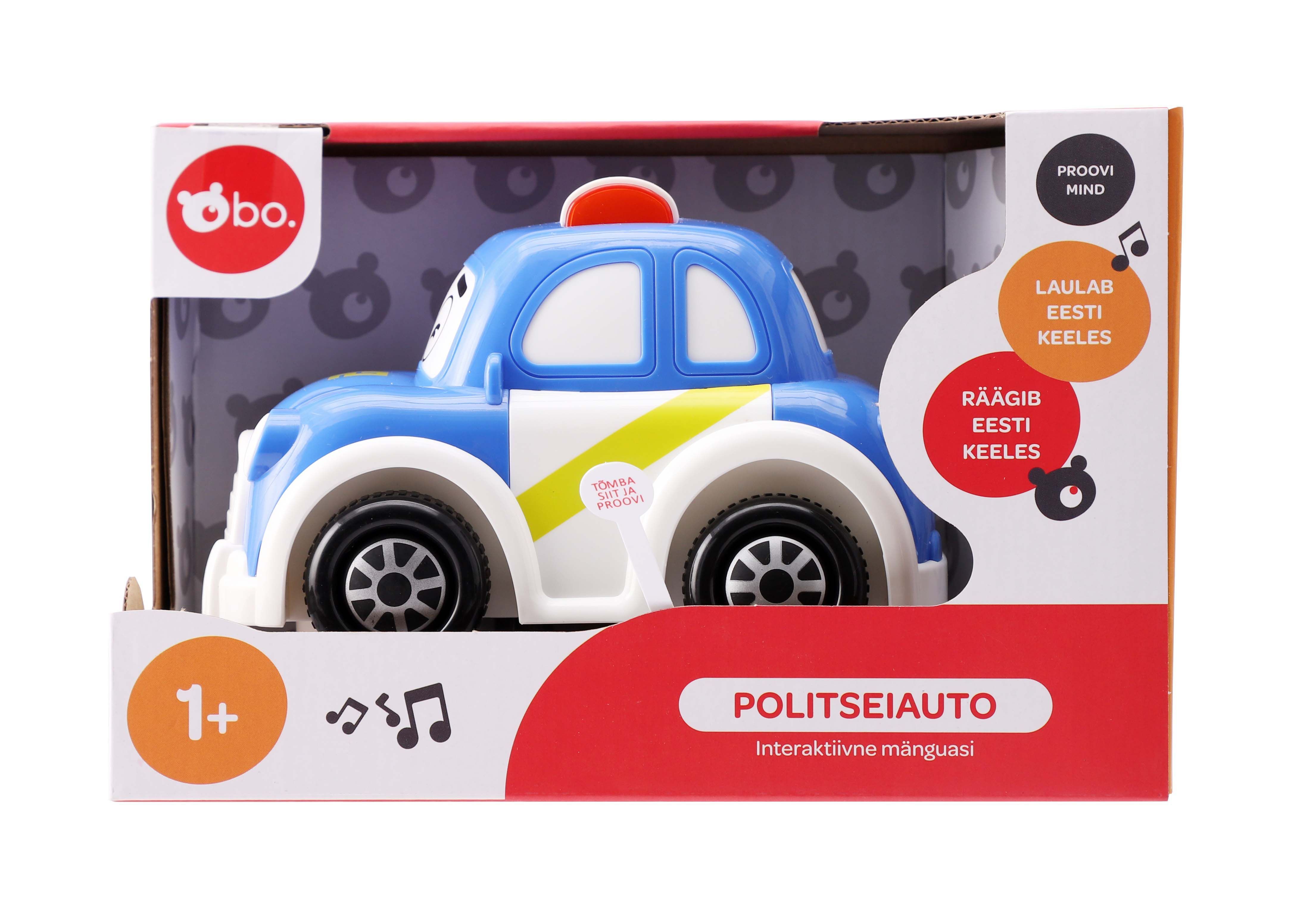 See interaktiivne bo. politseiauto on ideaalne esimene auto teie väikesele! Tänu põrkeanduritele sõidab auto edasi ja edasi, kuni selle ise peatad. Lõbusad helid ja valgusefektid teevad selle lõbusaks ka väikseimatele lastele. Vajuta uksele ja auto hakkab eesti keeles rääkima! Vajuta kapotile ja saad kuulata 4 eestikeelset laulu - "Käänulised Teed", "Lõvi Leo", "Reisilaul" ja "Tublilt Sõiduvees"!