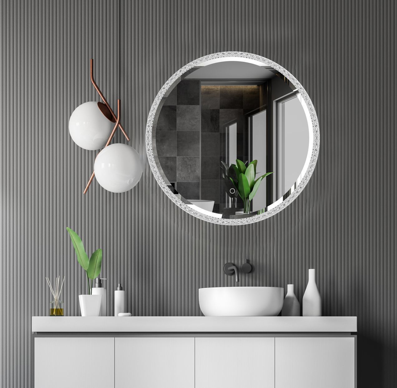 Vinchome LED Peegel Rio mõõduga 60 cm. Põhivalgus pluss ümbritsev valgus, vormitud kristallist nagu PMMA raamid. Spetsiaalselt disainitud raam muudab valguse kuju väga huvitavaks. Võimsus on 51 W, LED võimsus 39, valgusvoog on 2980 lm.