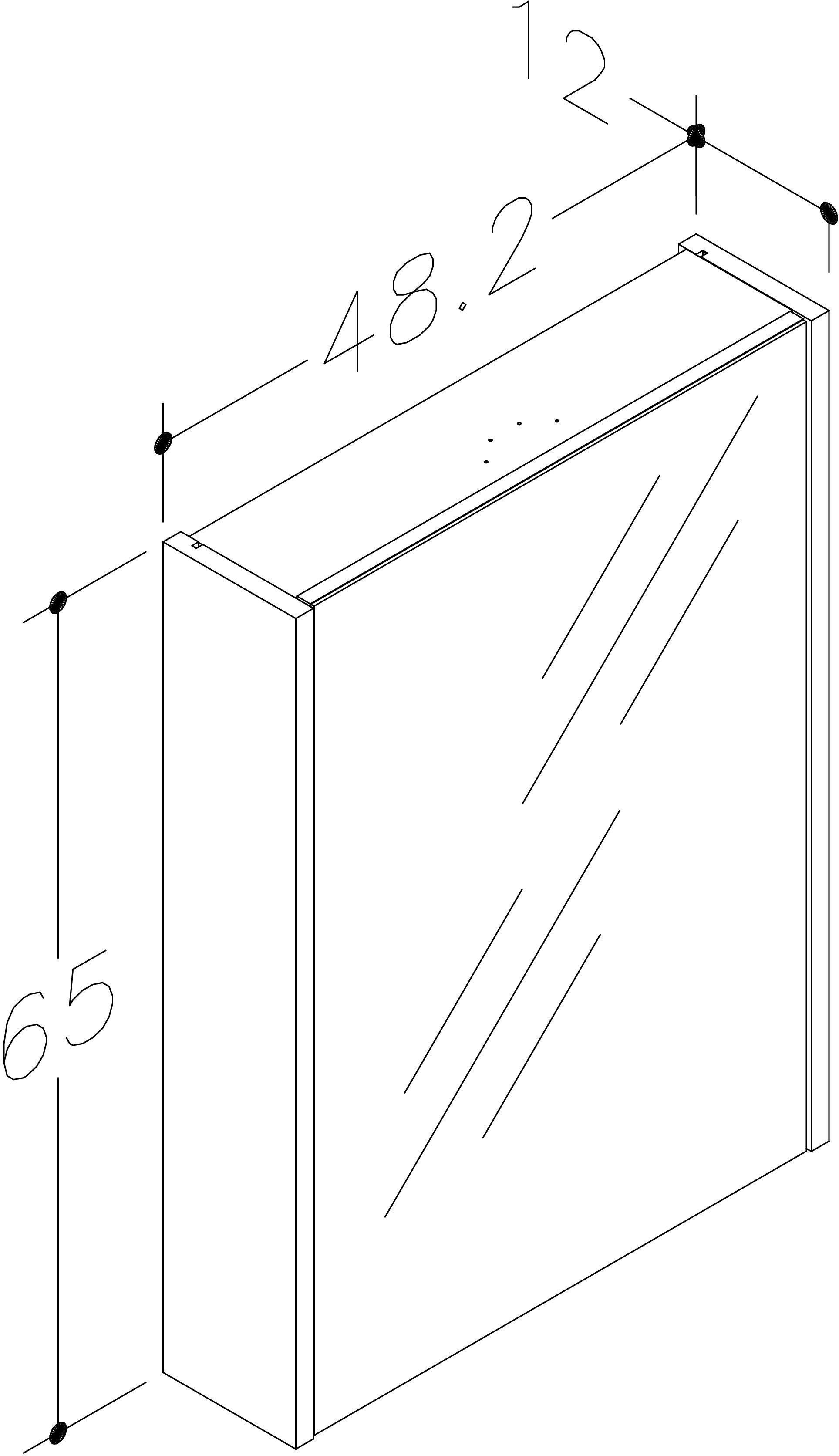 RB Bathroom peegelkapp must tamm on mõõtmetega 12 x 48,2 x 65 cm.