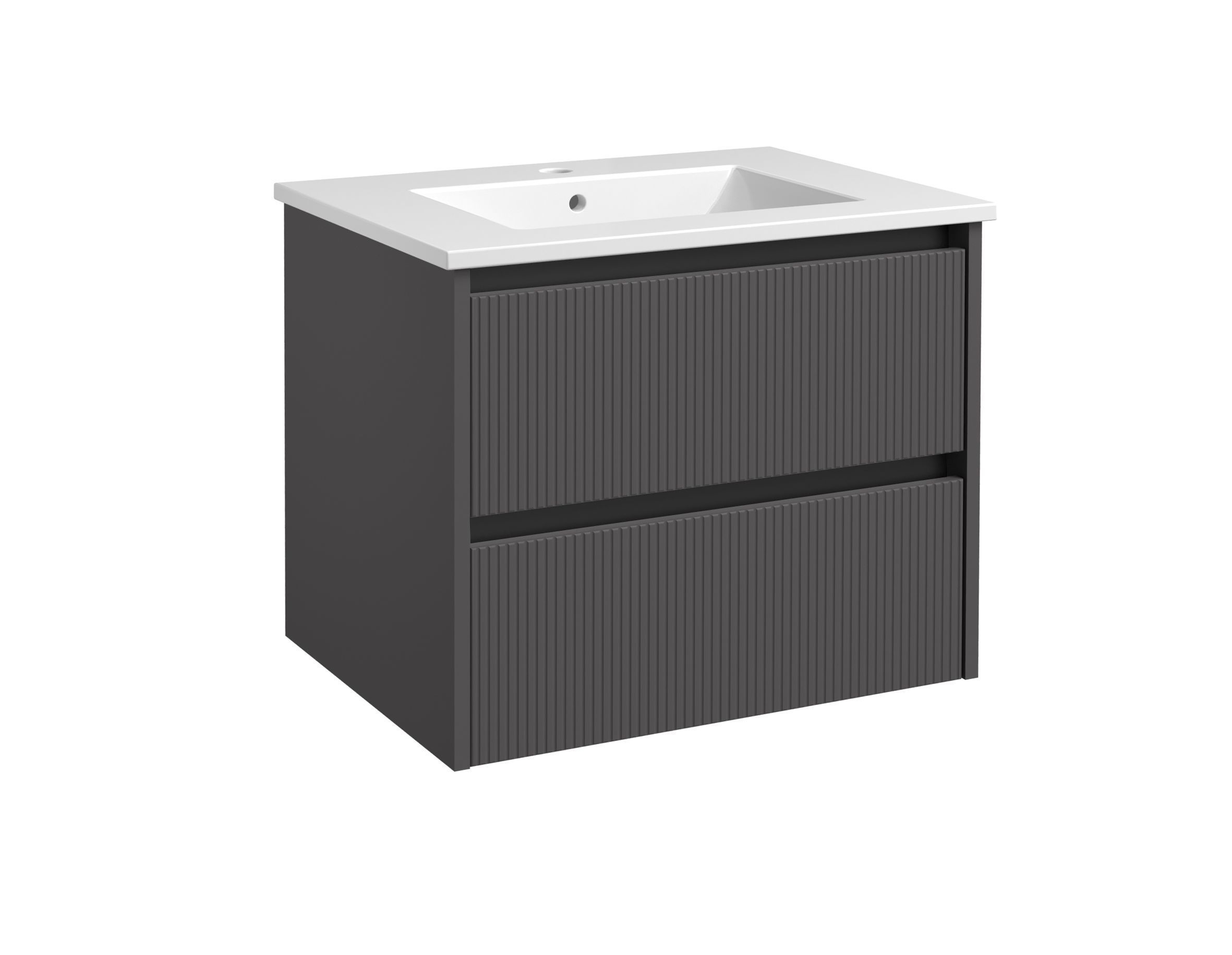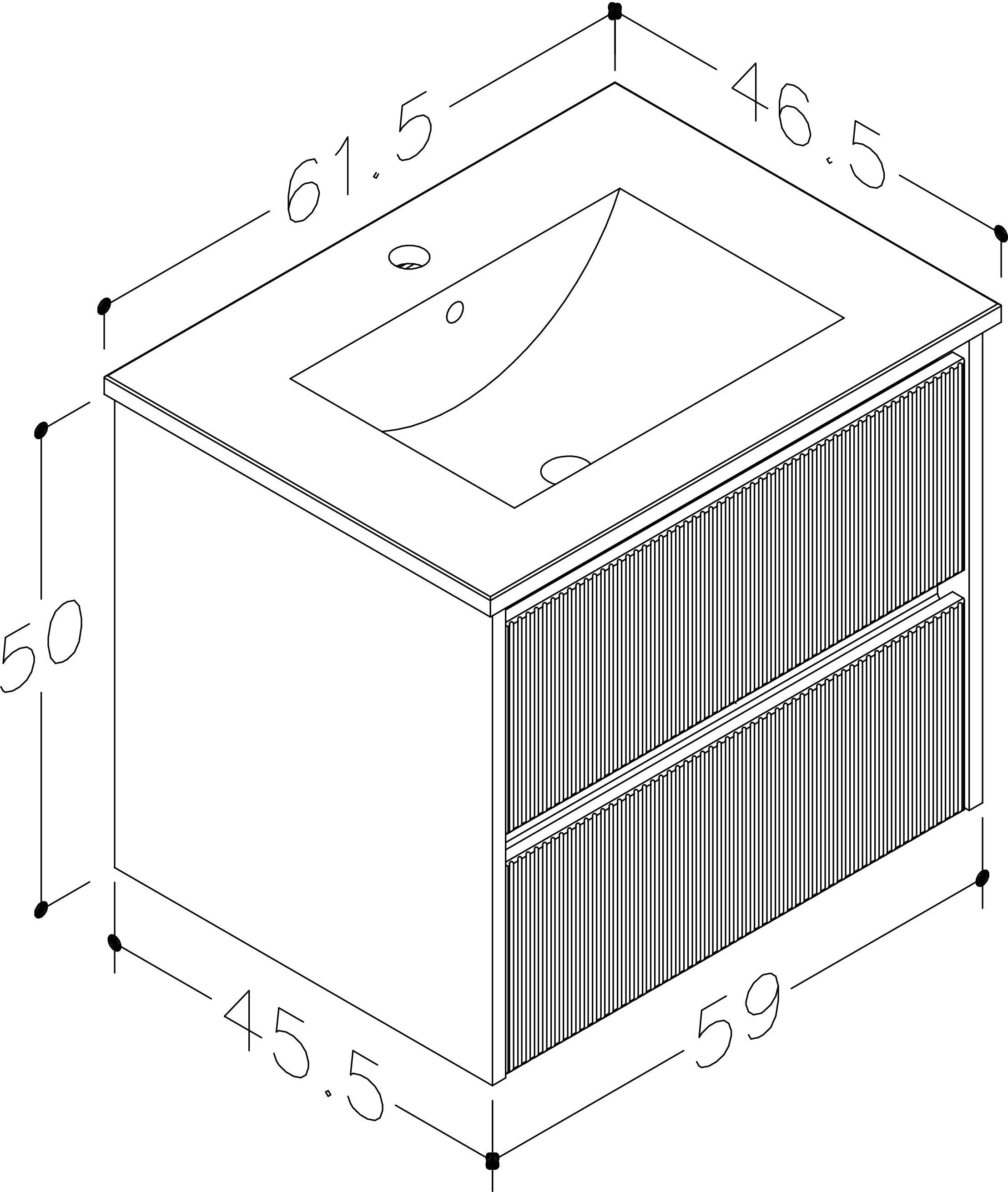 RB Bathroom Urban 60 valamukapp koos valamuga on mõõtmetega 45,5 x 59 x 50 cm. Kapp on matt halli värvi.