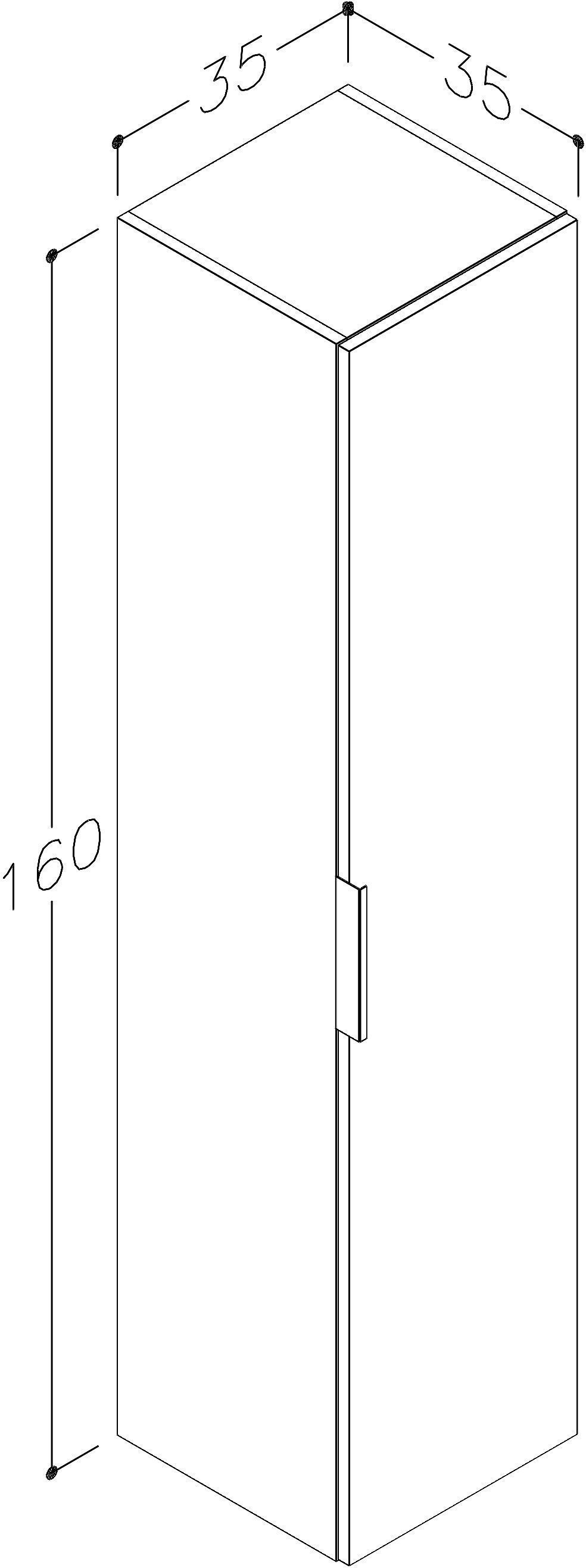 RB Bathroom Mono 35 kõrge vannitoakapp on mõõtmetega 35 x 35 x 160 cm.