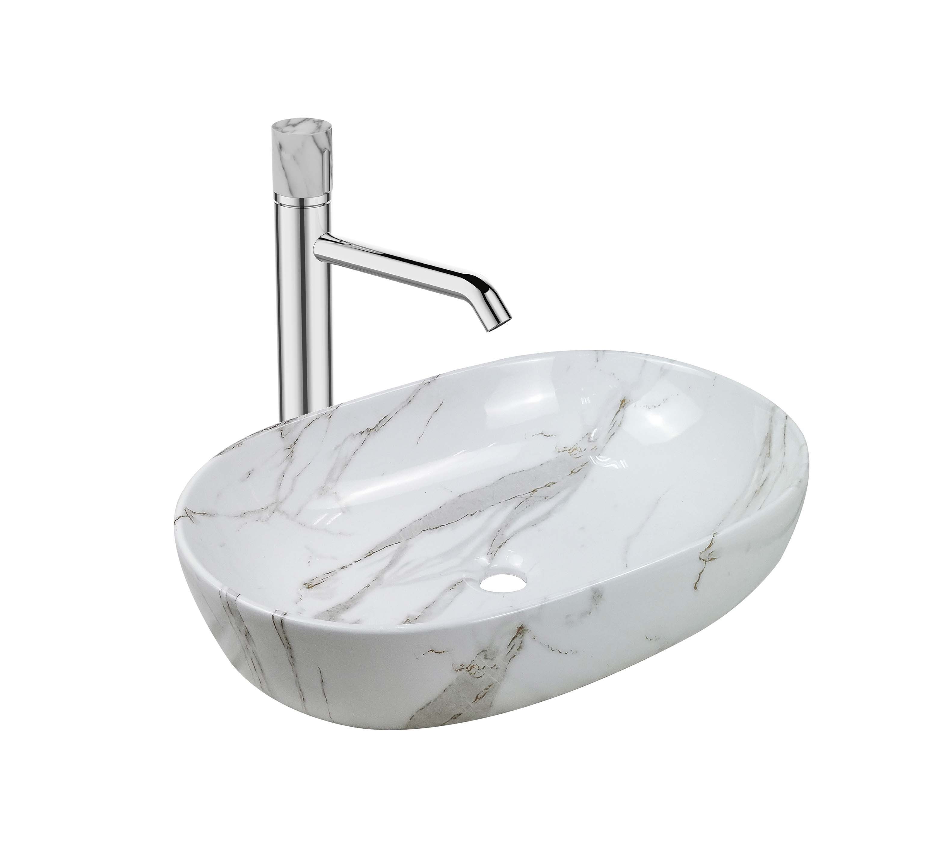 • Valamu on ovaalne, värvilt valge marmor ja läikiv.