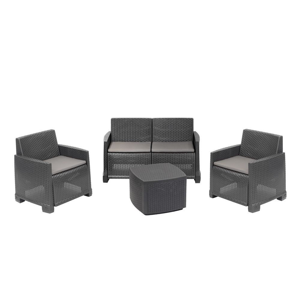 Progarden aiamööbel Como. Komplektis on kaks tooli 72 x 66 x 74 cm, diivan 66 x 129 x 74 cm ja laud 53 x 53 x 40 cm.
