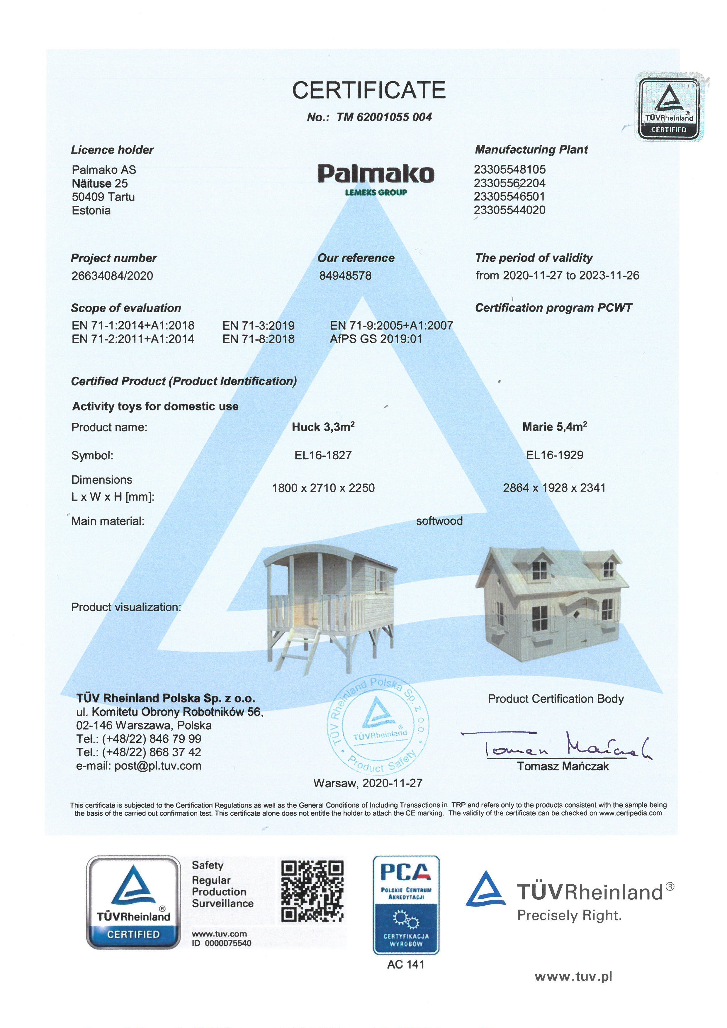 • Vastab Euroopa Standardite EN 71-1 & EN 71-8 ja EL direktiividele 2009/48/EÜ