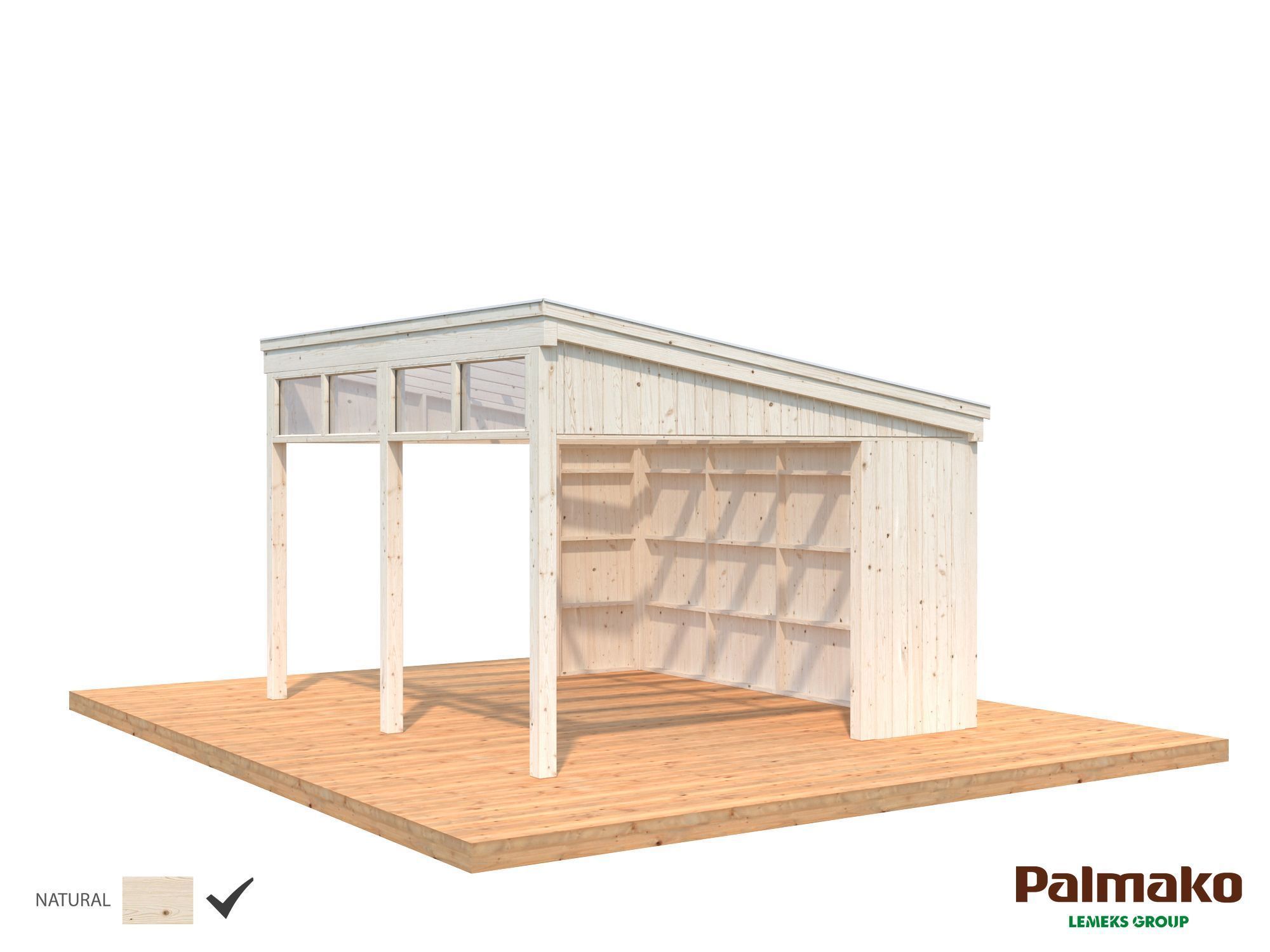 Naturaalsest puidust paviljon ilma katuse ja usteta. Terrass/põrand ei ole valikus. Mõõtmed on 356 x 417 x 281 cm.