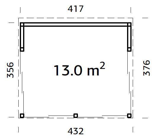 Naturaalsest puidust paviljon lükanduste ja polükarbonaatkihtplastikust katusega. Terrass/põrand ei ole valikus. Mõõtmed on 356 x 417 x 282 cm.