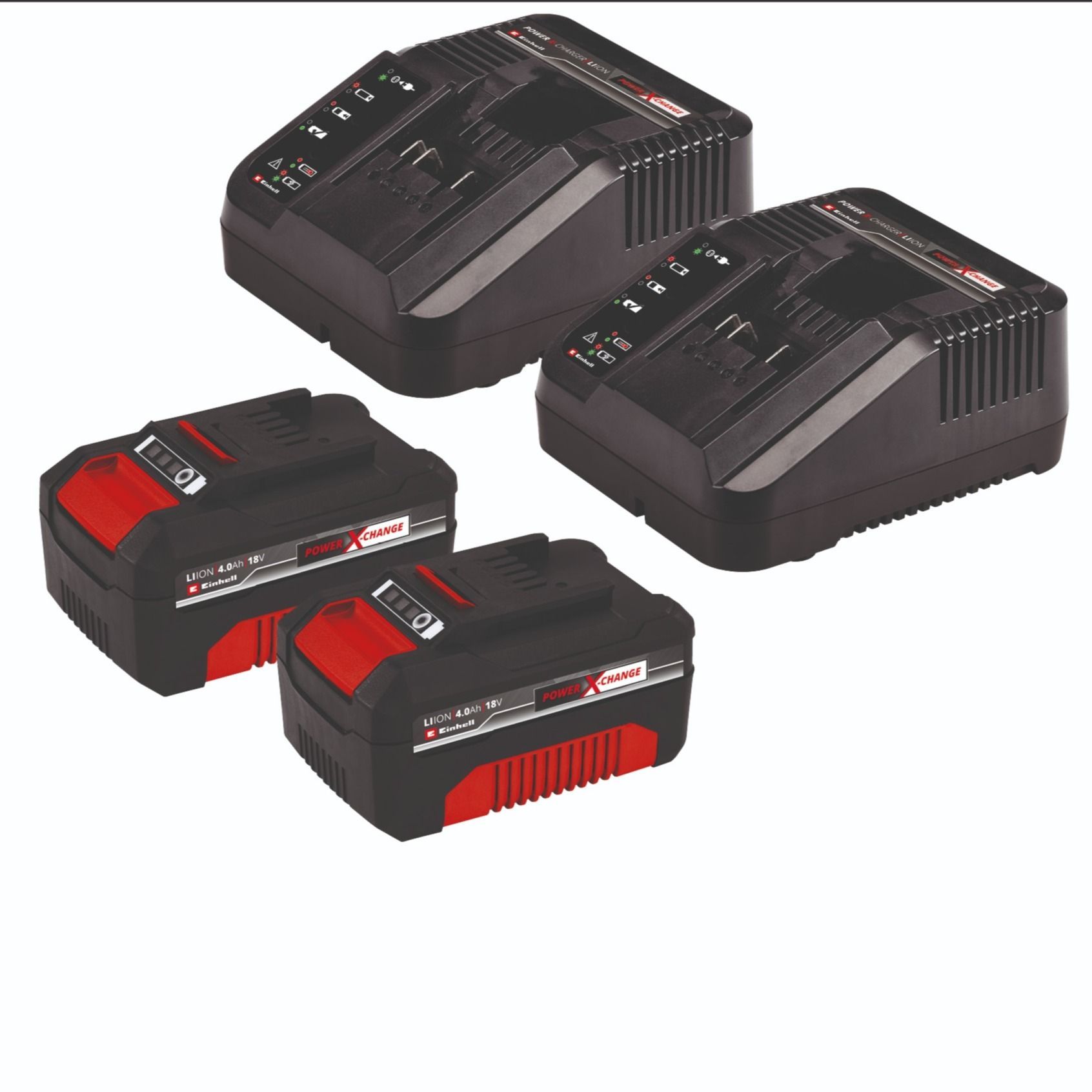 Igal akul on kolme LED-iga laadimistaseme indikaator, kus saate hetke laadimistaset hõlpsalt kontrollida. Lisaks saab akusid kasutada kõigi Power X-Change perekonna tööriistade jaoks. Komplektis on kaks kiirlaadijat.