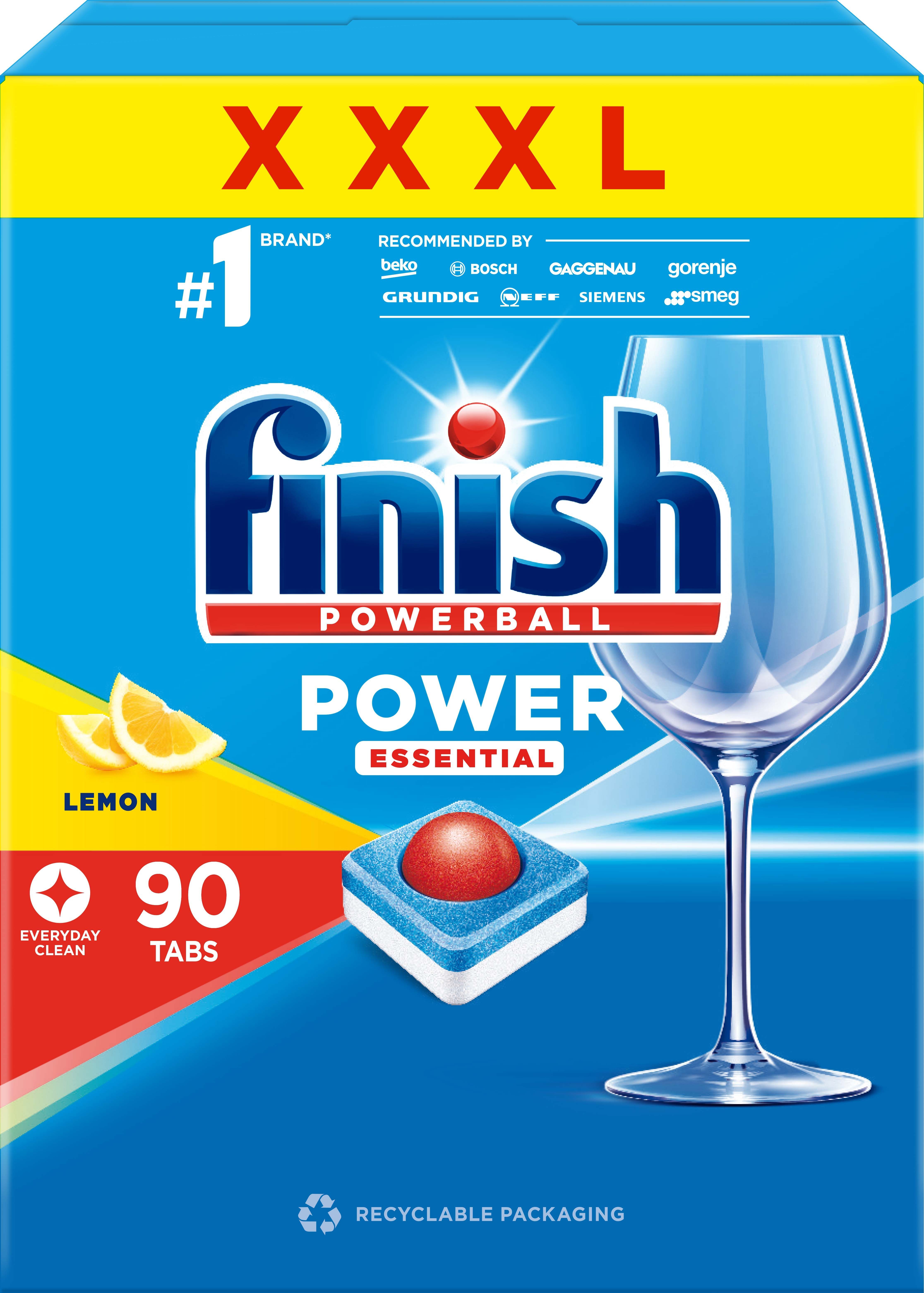 Finish Power Essential, kõik ühes lahendus teie nõudele. Meie Powerball annab tabletile lisajõu, et tagada igapäevane puhtus ja sära esimese korraga ja iga kord. MEIE PANUS TULEVIKU HEAKS: Finish on pühendunud vee säästmisele ja teeb palju tööd ka selle nimel, et vähendada oma toodete ja pakendite ökoloogilist jalajälge.