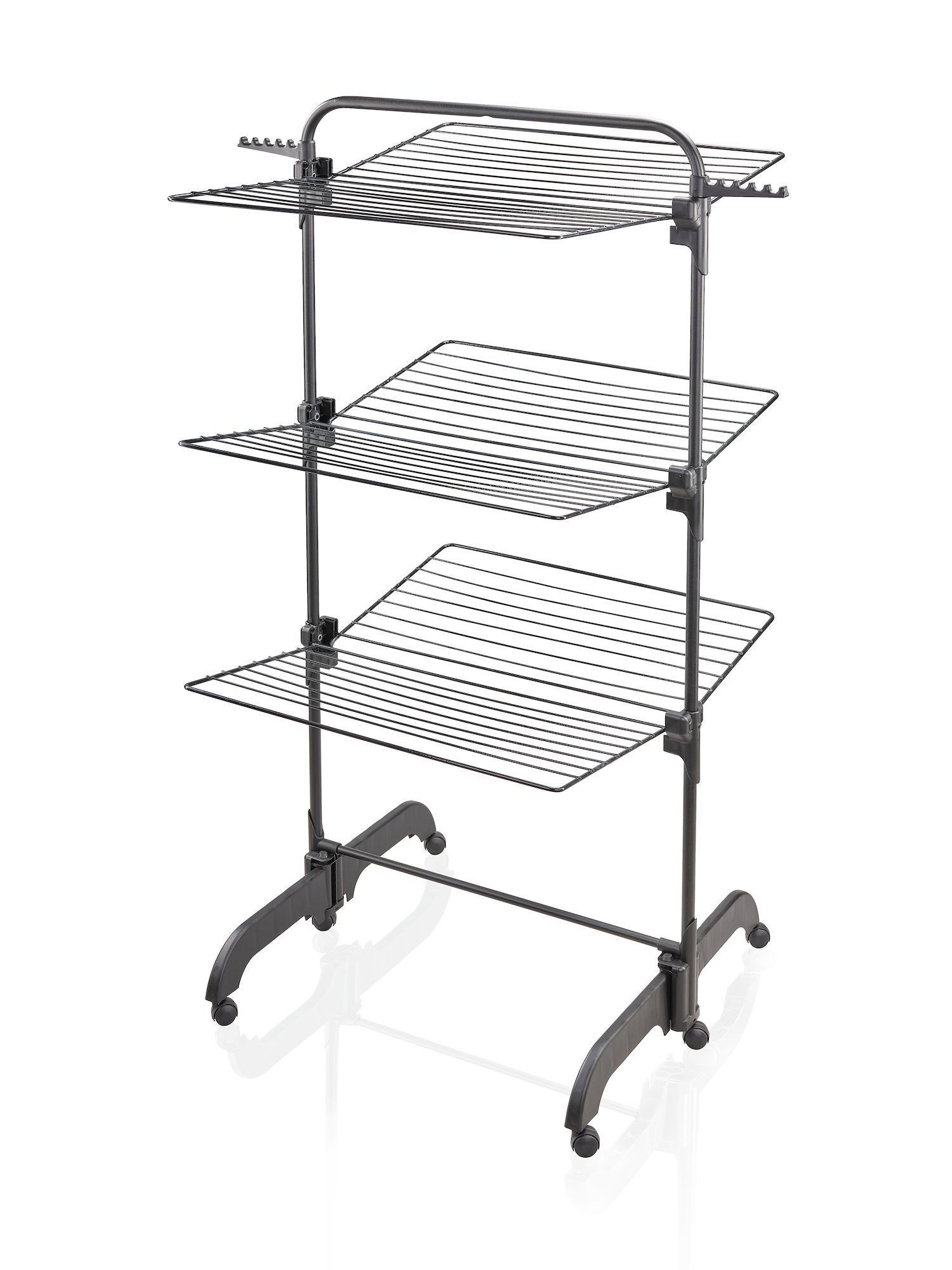 Leifheit pesukuivataja Comfort Tower 420 Black. Praktiline tornkuivatusrest stiilse musta ja antratsiivärvi disainiga. 42 m kuivatuspinda kompaktsel pinnal. 3 erinevat kuivatustaset, lihtne riputada pesu ja iga tase eraldi kokkupandav, võimalik kasutada ka ainult ühte poolt eraldi 6 x 360° rattad mugavaks liigutamiseks ja stabiilne püsimine. Sisaldab 2 riidepuu hoidjat kuni 10 riidepuule, mis annab lisaks kuivatuspinda juurde.