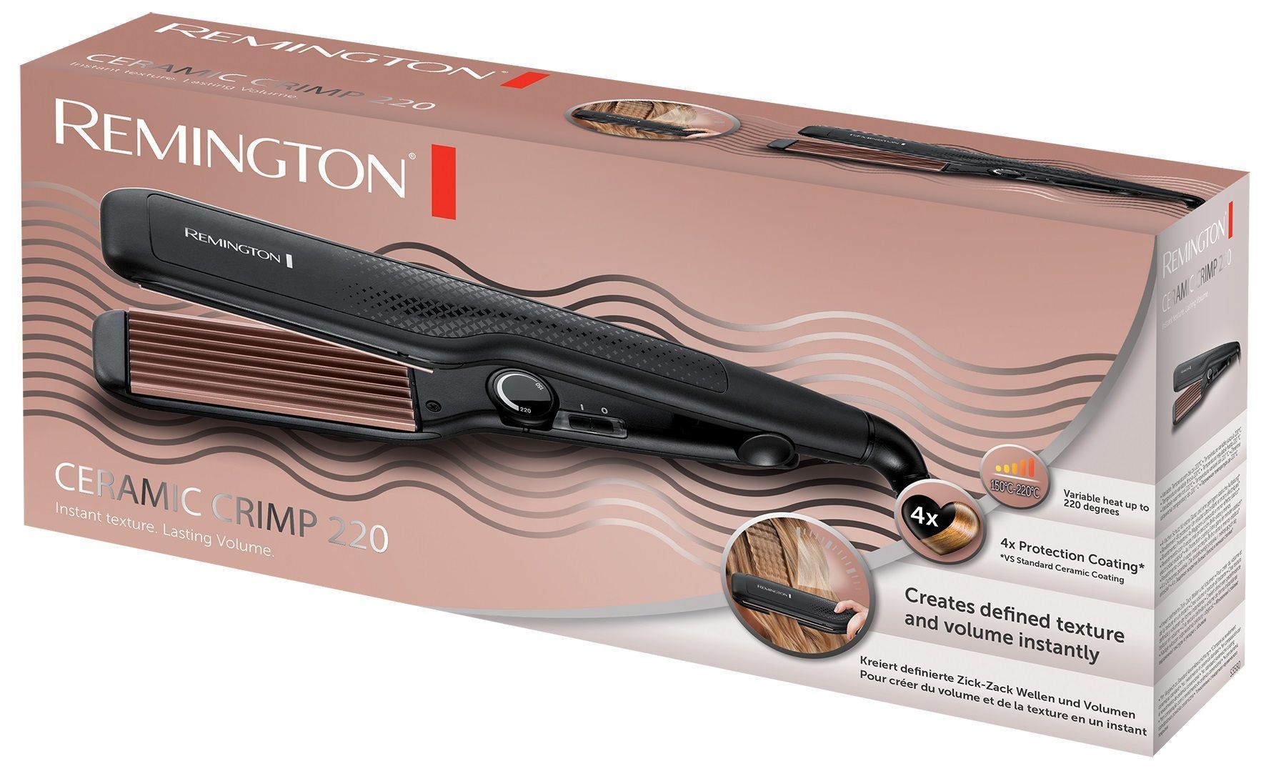 Remington S3580 Ceramic Crimp 220 lokitangid pakuvad tõhusat tõstet, mahtu ja tekstuuri, kasutades turmaliinkeraamilist katet, mis tagab nelja korda rohkem kaitset kui tavaline keraamika. Antistaatiline pind võimaldab sujuvat libisemist ja väldib kuumuse ebavõrdset jaotumist, jättes juuksed läikivaks ja terveks. Laiad plaadid katab suurema osa juustest korraga, säästes aega stiliseerimisel. Lokitangid soojenevad 30 sekundiga ja pakuvad muutuvat temperatuuri seadistust. Kuumakindel matt ja automaatne 60-minutiline väljalülitusfunktsioon tagavad ohutu ja mugava kasutamise.