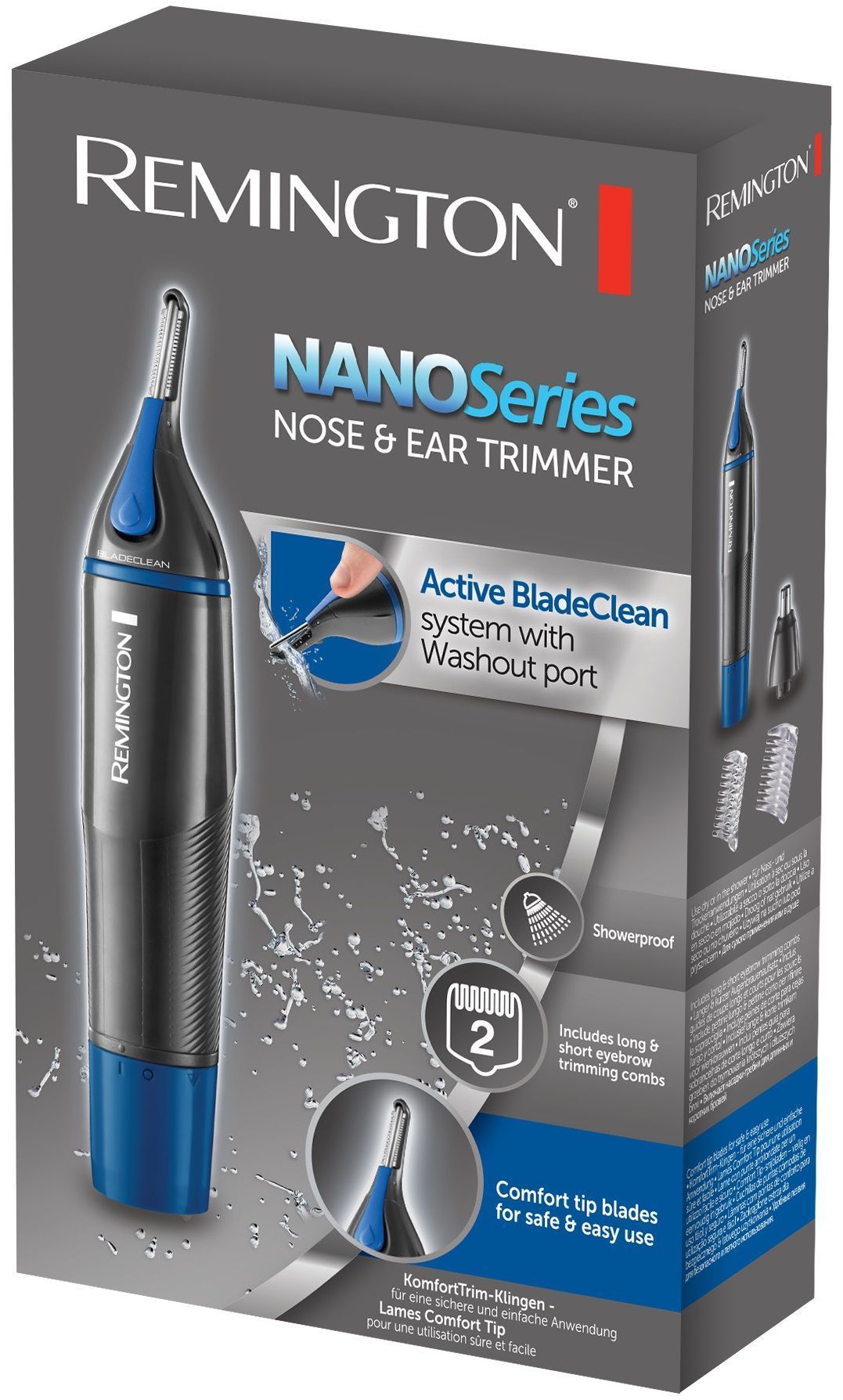 Remington NE3850 Nano Series nina- ja kõrvakarvade trimmer on ideaalne tööriist soovimatute karvade eemaldamiseks. Mikroobivastane Nano hõbedaga korpus ja Active BladeClean süsteem tagavad hügieenilise ja lihtsa hoolduse, takistades bakterite kogunemist. Topeltteraga lõikur ja pöörlev lõikepea on disainitud ohutuks ja täpseks lõikamiseks, vähendades ärrituse riski. Trimmer on täielikult dušikindel, töötab patareidega ja kaasas on kaheaastane garantii.