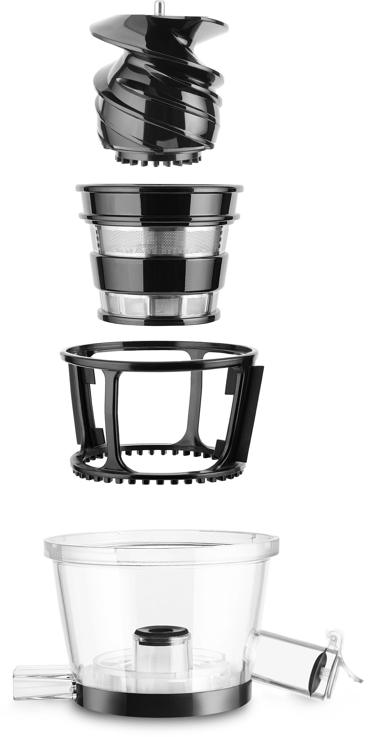 Mahlapressil on roostevabast terasest mikrosõelfilter, mis tagab kvaliteetse ja puhta mahla. Kiirusel 60 pööret minutis töötab seade vaikselt, müratasemega alla 70 dB (A), pakkudes rahulikku kasutuskogemust.