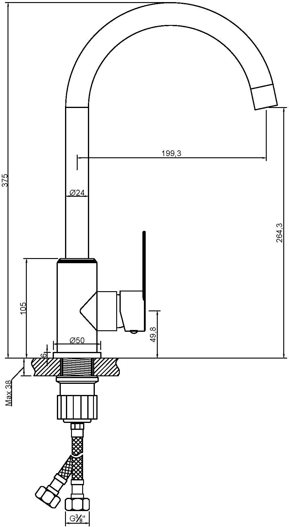 Invena Iron Inox köögisegisti. • Ühe kangiga, vertikaalselt paigaldatav