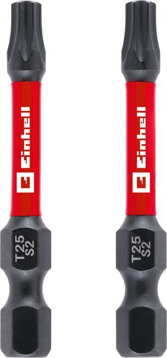 Einhelli löögikindlad otsikud, mis on valmistatud löögikindlast, mangaanfosfaatitud S2 terasest T25 ajamiga ja 50 mm pikkusega, on saadaval kahes versioonis. Kuna need on eriti vastupidavad, võimaldavad tõhusat jõuülekannet ja neil on suur kandevõime, sobivad need ideaalselt ambitsioonikateks projektideks. Punase värvirõnga ja Einhelli logoga löögikindlatel otsikutel on ka torsioonitsoon, mis neelab tõhusalt kruvimisel tekkivaid jõude. 1/4-tollise E 6.3 varrega sobivad löögikindlad otsikud standardsetesse (löögikindlatesse) akutrellidesse ja puuridesse. Spetsiaalselt isetegijate vajadustele kohandatud, tagavad need usaldusväärse jõudluse laias valikus käsitsi tehtavate tööde jaoks.