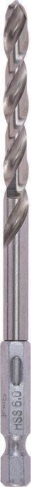 HSS keerdpuurid 1/4" kuusnurkse varrega vastavalt ISO 1173, E 6.3, parempoolse lõikega tüüp N, täppislihvimine, sobib kõigile akutrellidele ja puuridele ning 1/4" kuusnurkse ajamiga otsakute hoidjatele vastavalt ISO 1173, isevärv, otsanurk 135 kraadi, legeeritud ja pehme terase, valuterase, survevalude, sinterterase, värviliste metallide, kõvade plastide jaoks.