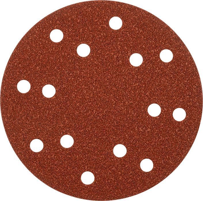 Abrasiooniga lihvketas Ø 150 mm, puidu ja metalli jaoks, alumiiniumoksiidist abrasiivkattega, fenoolvaiguga seotud, tugeva aluspinnaga, takjakinnitusega kangast aluspinnaga, perforeeritud, kasutamiseks ekstsentriklihvijatega, metalli ja puidu, värvi, laki, pahtli, kivi ja plastiku lihvimiseks.