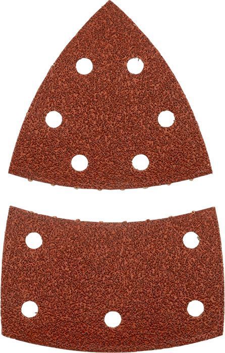 Lihvimiskolmnurgad, puit ja metall, kõrgekvaliteediline korund, 100 x 62, 93 mm, alumiiniumoksiidiga kaetud, täielikult vaiguga seotud, tugevdatud alusmaterjal, veluurkattega, perforeeritud, mitmeotstarbeliseks lihvijaks, metalli ja puidu, värvi, laki, täiteaine, kivi ja plasti lihvimiseks.