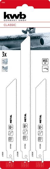 Kwb BiM metalli saelehtede komplekt, 3-osaline, pakub täpseid lõikeid metallis. Bi-metallist konstruktsiooni ja 1/2' universaalse varrega on need terad vastupidavad ja ühilduvad kõigi standardsete saagidega. Komplekt sisaldab 150 mm tera 1,4 mm hammaste sammuga, 150 mm tera 1 mm hammaste sammuga ja 228 mm tera 1,8 mm hammaste sammuga. Kõik terad on 19 mm laiused ja 0,9 mm paksused, mis tagab stabiilsuse ja täpsuse lõikamisel. Freesitud hambad tagavad puhtad lõikeservad ja vähendavad oluliselt järelviimistluse aega.