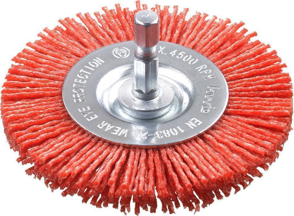 Puhastamine, värvi ja laki eemaldamine metallilt. Kroom-nikkel teraste keevitustelt karastuse värvi eemaldamine. Peen disain läbimõõduga 75 mm, jäme disain läbimõõduga 75 mm, E6.3 kuuskantvars. Eriti sobiv kitsaste servade, raamide, restide ja roostevabast terasest, metallist, värvilisest metallist ja puidust torude töötlemiseks. Sobib ka puidu tekstureerimiseks.