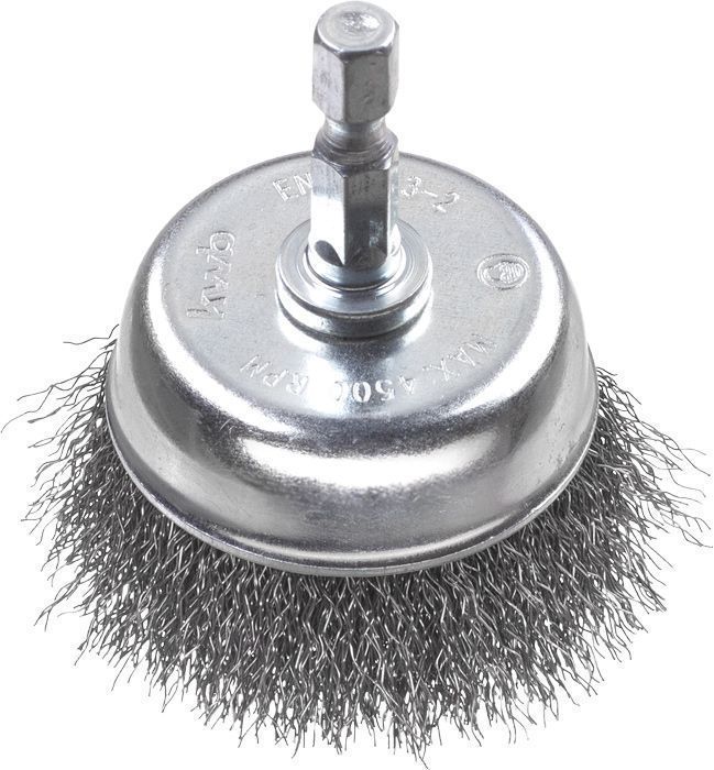 Rooste eemaldamine, puhastamine, karestamine, mattviimistlus ja värvi, katlakivi ja mustuse eemaldamine metallilt ja kivilt. 50 mm läbimõõduga, HSS-traat, jäme disain traadi paksusega 0,3 mm, peen disain traadi paksusega 0,2 mm, E6.3 kuuskantvars. Eriti sobiv raketiselaudade, fassaadide ja keskmise suurusega pindade puhastamiseks.