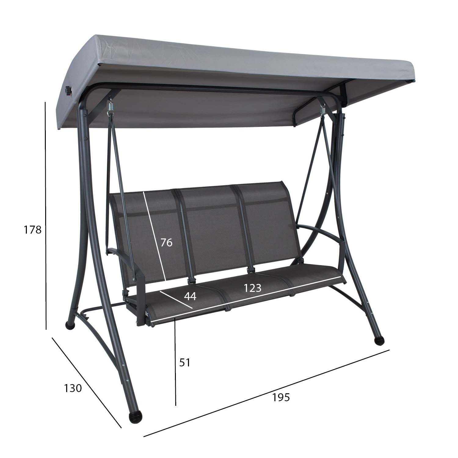 Aiakiik TAMPA 3-kohaline, hall. Kiige textilene materjaliga kaetud iste laseb hästi õhku läbi, kuivab kiiresti ja seda on lihtne puhastada. Kiige katuseraam on kaetud halli polüesterkangaga (180g/m²). Katuse kaldenurk on reguleeritav. Kiige tugev ja stabiilne terasraam on viimistletud halli pulbervärviga. Kiige üldmõõdud on 195x130xH178cm. Raami torude mõõdud D48/38/25/22mm, käetoe mõõdud 49x20mm. Kaalupiirang 250kg. Toode on muutlikes ilmastikutingimustes hästi vastupidav ja lihtsalt hooldatav. Kiige eluea pikendamiseks soovitame kasutada välimööbli katteid. HOIUSTAMINE: suvehooaja lõppedes soovitame aiamööblit hoiustada siseruumides. Puhastage ja kuivatage mööbel enne hoiule panekut. Kasutage hoiustamiseks kuiva ning hea ventilatsiooniga ruumi.