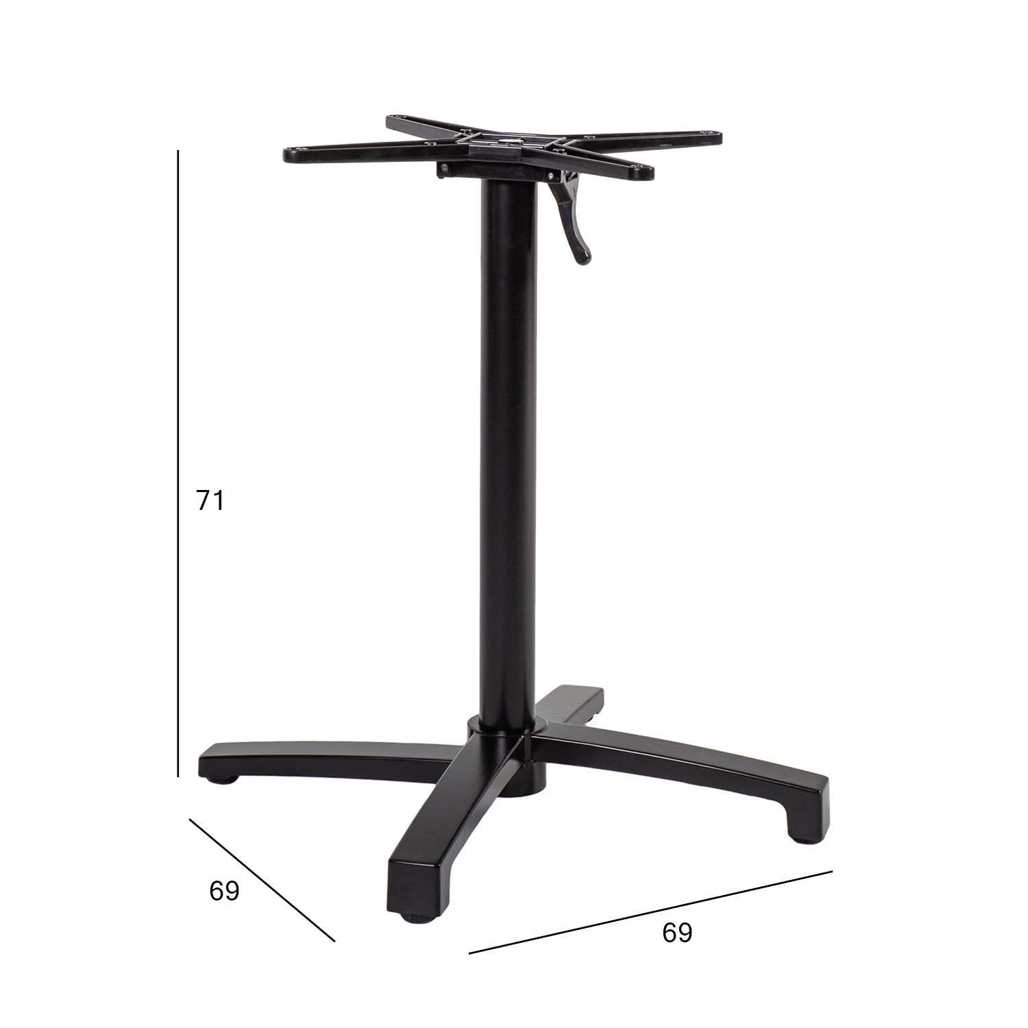 Lauajalg BISTRO 69x69xH72cm, must. Lauajalg on valmistatud alumiiniumist ja viimistletud musta pulbervärviga. Lauaplaadi kanduri mõõdud on 52x52cm. Kandur on küljele keeratav. Alusristi mõõdud on 69x69cm, tugipost D60x1,5mm. Lauajala juurde sobiva lauaplaadi maksimaalsed mõõdud on 90x90cm. Lauaplaadi kinnituskruvid ei kuulu komplekti. Toode on ilmastikukindel.