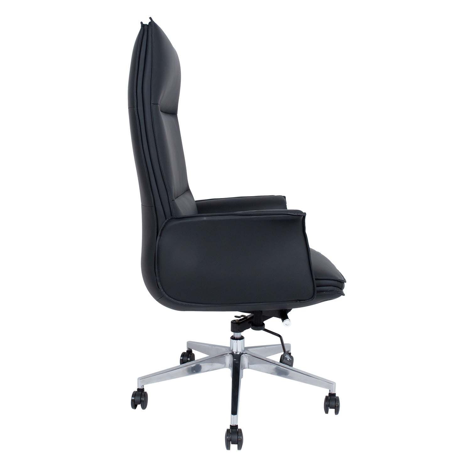 Töötool KATHIE must. Tooli pehme polsterdusega iste ja käetoed on kaetud kunstnahaga. Lukustatav kiikemehhanism tagab suurepärase istumismugavuse. Istme kõrgus on reguleeritav gaasamordi abil. Toolil on 5-haruline poleeritud alumiiniumist jalarist, R35cm ja plastikrattad 60mm. Tooli üldmõõdud on 72x69xH125-129cm. Istme laius 51cm, istme sügavus 49cm, istme kõrgus 51-55cm. Käetoe kõrgus istmest 19cm. Kaalupiirang 120kg.