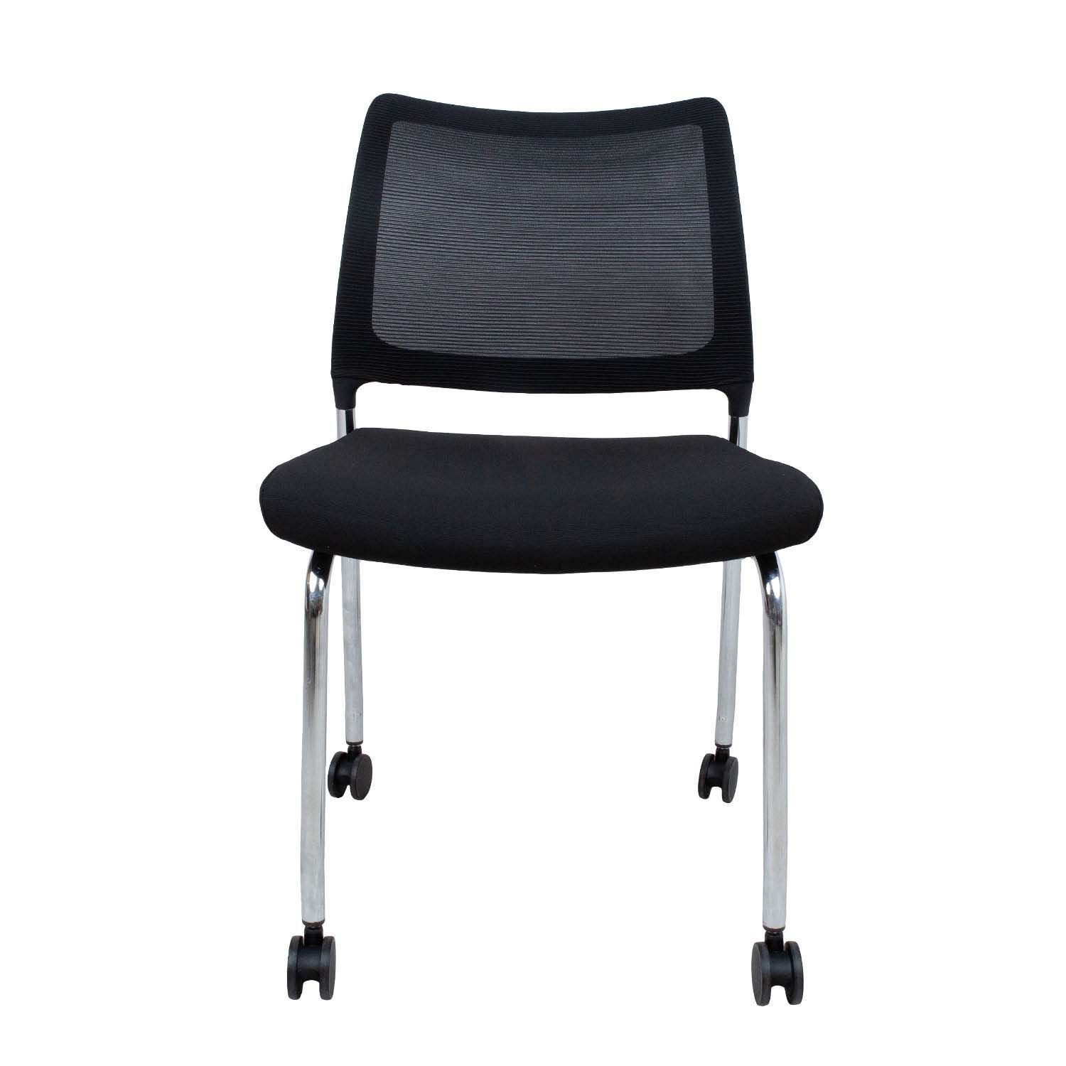 Klienditool VICKI ratastega, must. Tooli seljatoe plastikraam on kaetud polüestervõrkkangaga. Kergelt polsterdatud iste on kaetud polüesterkangaga. Tooli metallist jalad ja raam on kroomitud. Toolil on lukustatavad plastikrattad. Tooli üldmõõdud on 48x55xH83cm. Istme laius 48cm, istme sügavus 46cm, istme kõrgus 47cm. Kaalupiirang 120kg.