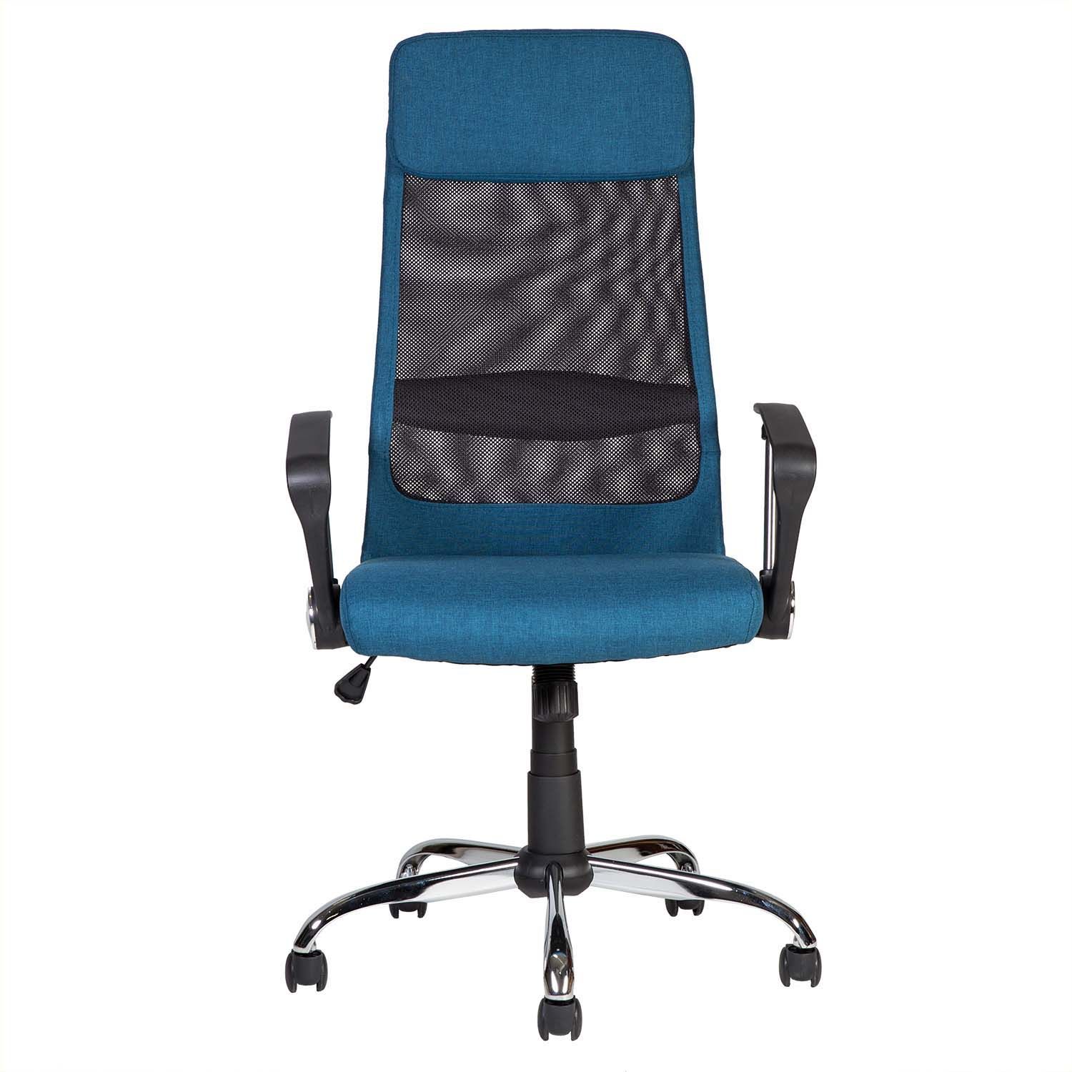 Töötool DARLA sinine. Tool on kaetud sinise polüesterkangaga ja polüestervõrkkangaga. Toolil on kiikemehhanism. Istme kõrgus on reguleeritav gaasamordi abil. Käetoed on valmistatud metallist ja plastikust. Jalarist on metallist, värvus kroom. Toolil on plastikrattad, D50mm, tihvt: 11mm. Tooli kõrgus on 116-126cm, istme kõrgus 46-56cm. Toote mõõdud on 62x63xH116-126cm. Tooli kaalupiirang on 120kg.
