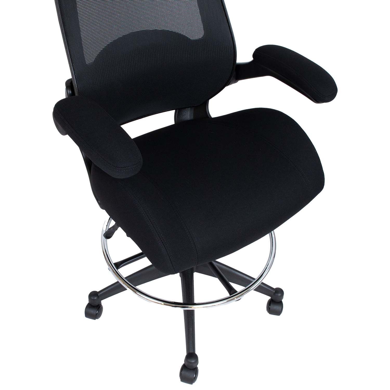 Kõrge töötool MILLER must. Mugava töötooli voolujooneline iste on vormitud vastupidavast polüuretaanvahust. Iste ja seljatugi kaetud polüesterkangaga, Martindale'i väärtus 30 000. Selja nimmeosa toetab kehakuju järgiva vormiga pehme padi seljatoe taga. Toolil on kiikemehhanism. Kiikejäikus on reguleeritav vastavalt istuja kaalule. Istme kõrgus reguleeritav gaasamordi abil. Plastikust käetoed on polsterdatud ja kaetud polüesterkangaga. Käetugesid on võimalik üles tõsta. Peatugi on vabalt kallutatav, peatoe kõrgus on reguleeritav. Terasest jalatoe kõrgus on reguleeritav. Tooli 5-haruline jalarist on valmistatud tugevast mustast plastikust. Toolil on plastikrattad. Tooli üldmõõdud on 70x71xH134-153,5cm. Kaalupiirang 120kg.
