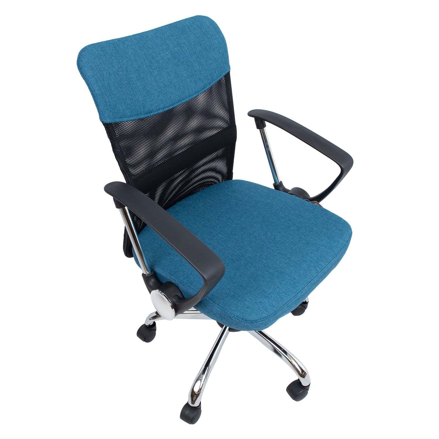 Töötool DARIUS sinine/must. Kergelt polsterdatud tooli iste ja seljatoe ülemine osa on kaetud polüesterkangaga. Seljatoe keskmine osa on kaetud polüestervõrkkangaga. Toolil on kiikemehhanism, lukustatav ühes positsioonis. Istme kõrgus on reguleeritav gaasamordi abil. Käetoed on plastikust ja metallist. 5-haruline jalarist on metallist, R30cm. Toolil on plastikrattad, 50mm. Tooli kõrgus on 93-103cm, istme laius 47cm, istme sügavus 46cm, seljatoe laius 43,5cm, seljatoe kõrgus 58cm. Toote mõõdud on 57x57xH93-103cm. Tooli kaalupiirang on 100kg.
