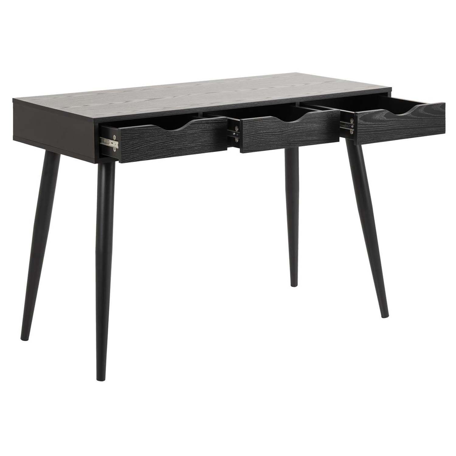 Kirjutuslaud NEPTUN 110x50xH77cm, must. Kirjutuslaud on vajalik täiendus igas kodus, võimaldades mugavamalt arvutit kasutada või endale praktiline kodukontori ruum luua. Kirjutuslaual on kolm sahtlit, mis on metallsiinidel. Laud on valmistatud melamiinplaadist. Värvus on must saarepuu. Jalad on valmistatud musta värvi metallist. Toote mõõdud on 110x50xH77cm.