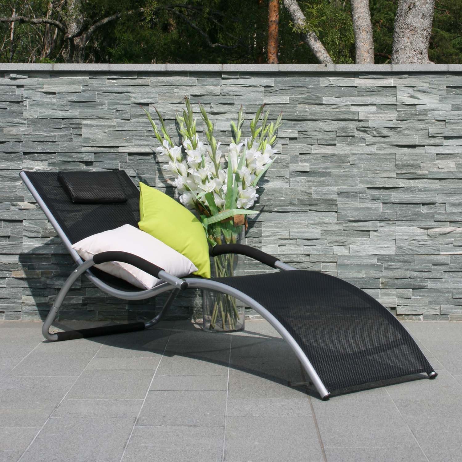 Lamamistool BRIGO 62x180xH26/66cm, must. Lamamistooli textilene iste laseb hästi õhku läbi, kuivab kiiresti ja seda on lihtne puhastada. Tooli raam on valmistatud alumiiniumist ja viimistletud halli pulbervärviga. Käetugedel on mustad polüuretaanist katted. Istme laius on 54cm, istme kõrgus kõige madalamas osas on 26cm, käetoe kõrgus maast 42cm. Kaalupiirang 120kg. Lamamistoolid on virnastatavad. Toode on muutlikes ilmastikutingimustes hästi vastupidav ja lihtsalt hooldatav. HOIUSTAMINE: suvehooaja lõppedes soovitame suvemööblit hoiustada siseruumides. Kasutage hoiustamiseks kuiva ning hea ventilatsiooniga ruumi.